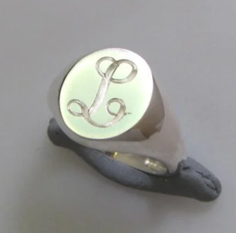 Sterling silver 925 medium weight signet ring bespoke engraved to order with one, two, or 3 initials extra deeply by laser